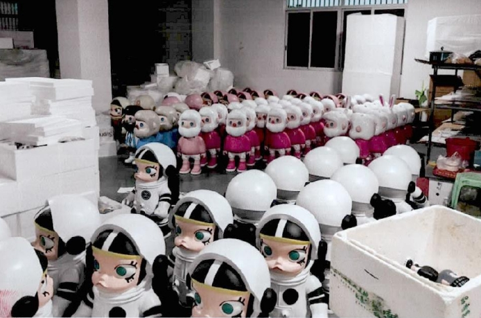 据吴某甲等人交代,他们起先是采购仿冒的成品手办,自行贴标后售卖,曾被权利人起诉商标侵权。为规避法律风险和降低成本,吴某甲经朋友介绍,找到开树脂工艺品厂的吕某、朱某,通过提供手办模具向吕某、朱某定制未上色的白坯半成品。